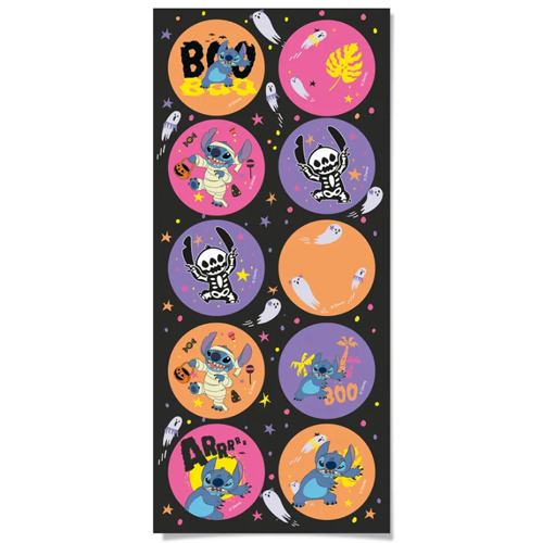 Os Adesivos Redondos Stitch Halloween são perfeitos para dar um toque especial às suas lembrancinhas, decoração ou até mesmo ao material de festa. Com uma encantadora estampa do personagem Stitch, eles são ideais para o tema de Halloween e festas infantis.